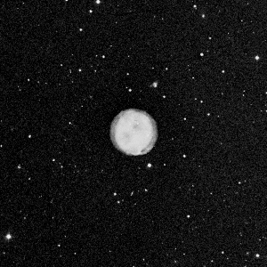 The Owl (M97) is one of the largest and brightest examples of a planetary nebula. Eclipsed only by the likes of the famous Ring and Dumbbell nebulae, the Owl is an excellent target for large an small telescopes alike. Its name is derived from the two dark spots that appear in photographs and larger telescopes. Catalogs list the Owl as 12th magnitude and 3' in diameter at a distance of 2000 light years, which translates to an actual diameter of nearly 2 light years. In small telescopes (<8") M97 appears as a round hazy patch of sky. Larger instruments may reveal the two dark spots. Observers with even larger instruments (>14") may glimpse the 16th magnitude central star. According to Burnham's, John Herschel saw M97 as "a large, uniform, nebulous disc, quite round, very bright, not sharply defined but yet very suddenly fading away to darkness." In April 2000 I observed M97 with my 18-inch Dob on an average night under dark skies. I noted: "Quite large and pale. Faint central star. Two dark regions on either side of center. Fuzzy, non distinct edges." While in the area don't miss the nearby galaxy M108, which lies 48' to the northwest. This edge-on galaxy is like a smaller version of M82.