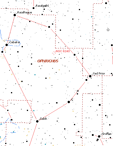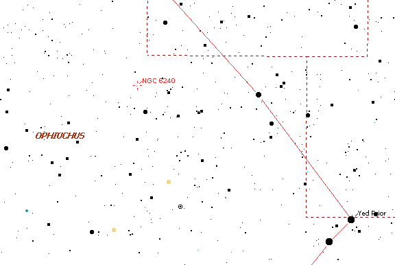 shows the location of NGC 6240 in Ophiuchus. The chart spans about 40o