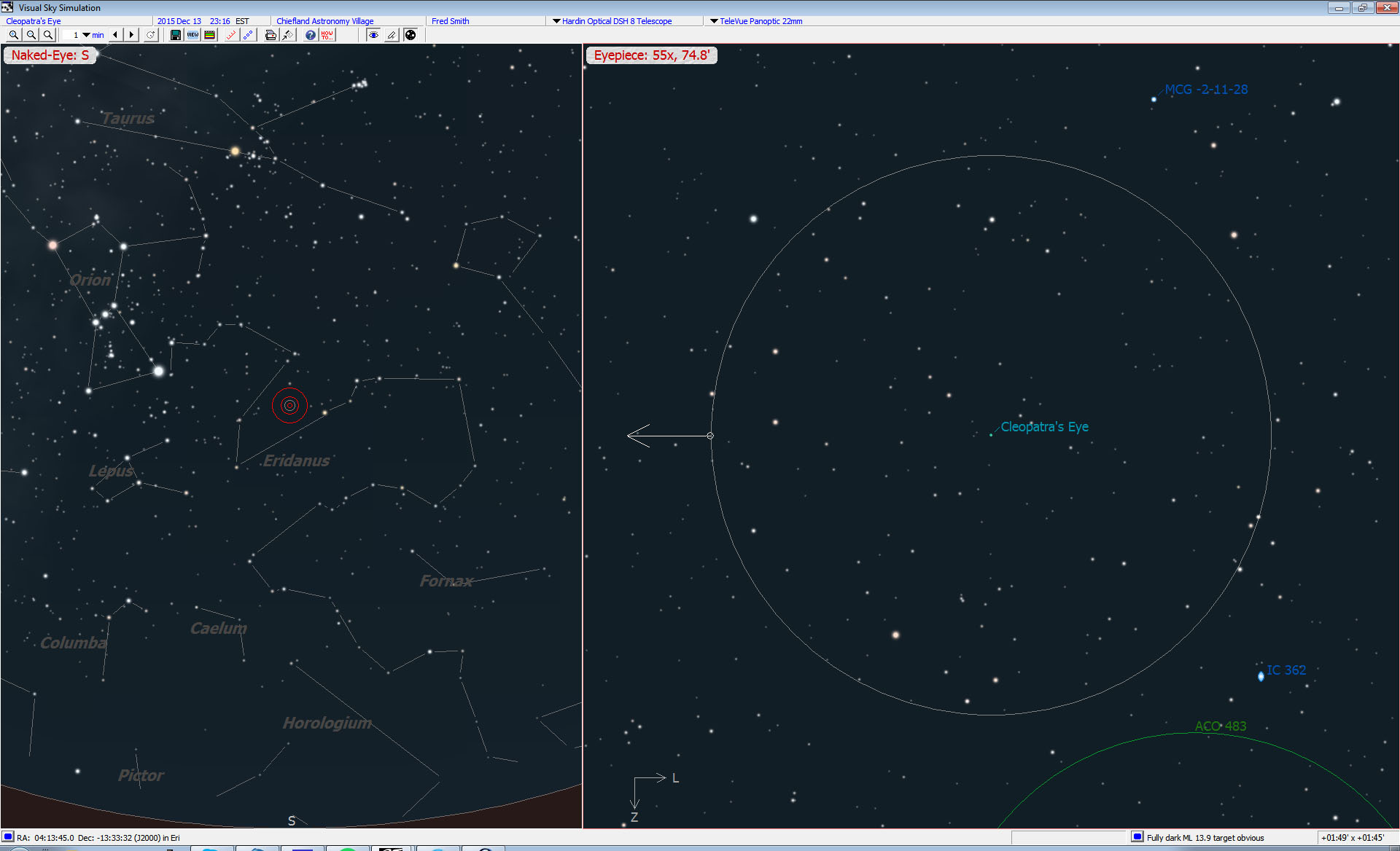 on the right closely resembles the appearance of NGC 1535 in small