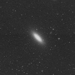 edge-on spiral galaxy appears bright even in a 6-inch scope.