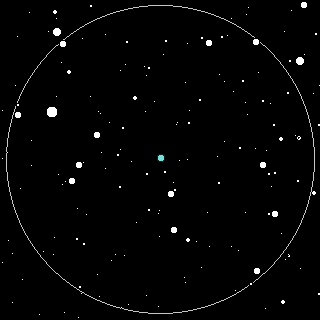 The field in an 8-inch f/8 at 75x. North is down and east is to the right. |