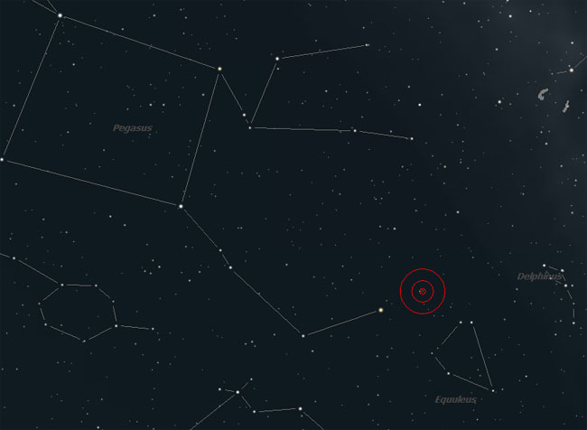 to the northwest of Epsilon Peg, M15 appears as a 7th magnitude